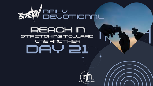 Day 1: The Stretch of FaithDay 2: Stretching to Seek FirstDay 3: The Man in the MirrorDay 4: The Early StretchPrayer Call: Reach OutDay 5: Worship That LiftsDay 6: Fasting That FreesDay 7: The Presence That TransformsDay 8: Being Visible for GodDay 9: Won't You Be My NeighborDay 10: The Heart of Your ServiceDay 11: Crossing BoundariesPrayer Call: Let Him Get CloseDay 12: Praying for the Lost: Burden for SoulsDay 13: The Stretch of CompassionDay 14: Witness That ShinesDay 15: We Over MeDay 16: God's Blessing in HarmonyDay 17: Choosing GraceDay 18: Carrying One Another's BurdensPrayer Call: Reaching ForwardDay 19: Encourage DailyDay 20: Different by DesignDay 21: Guard the Fellowship - Protect This HouseDay 22: Letting Go of the PastDay 23: Pressing OnDay 24: You Can Come Back From ThisDay 25: A Vision That See Beyond NowPrayer Call: Check Your DMsDay 26: The Recipe for Hope for the Generation That FollowsDay 27: Courage for New GroundDay 28: Finish Strong - Completing the AssignmentDay 29: Run with EnduranceDay 30: Our Next Stretch - Commissioned to Continue